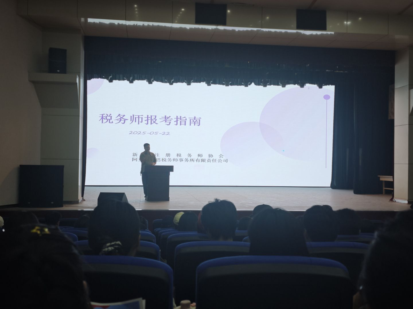 为助力学生深入了解职业,科学规划未来职业道路,5 月 28 日下午 4 时 30 分,财会系于青少年活动中心开展了一场意义非凡的分享会。此次活动特邀塔里木大学农林经济管理专业 2013 届毕业生、阿克苏勤思税务师事务所有限责任公司负责人蒋运平担任主讲嘉宾,为财会系学生带来税务师及注册会计师报考指南和考试经验的分享。